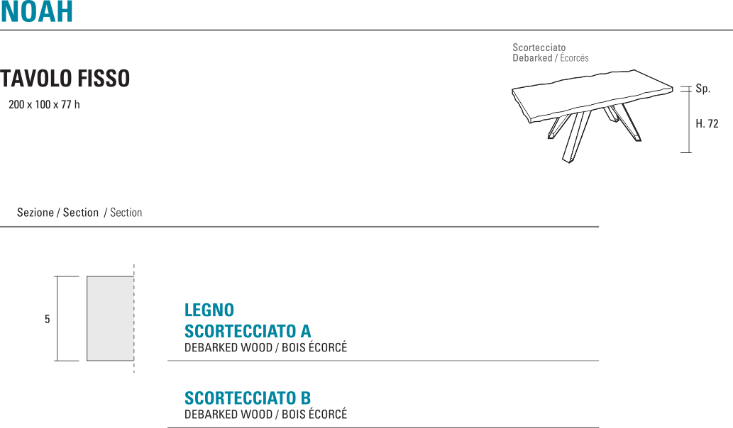 La Primavera NOAH scortecciato 200 | tavolo fisso