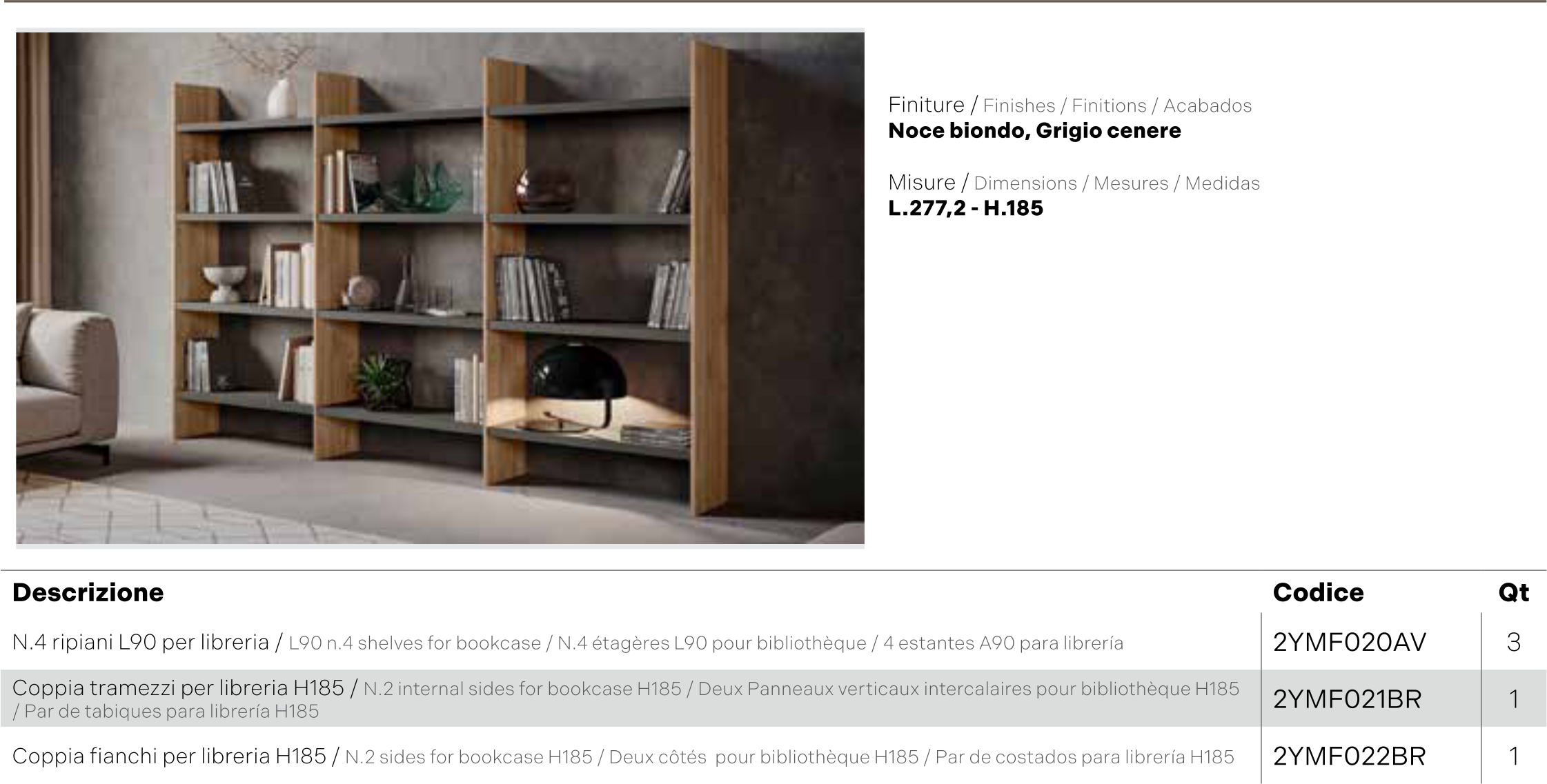 Una libreria elegante e dal forte impatto visivo, perfetta per ambienti living sofisticati. I ripiani in grigio cenere si abbinano armoniosamente alla struttura in finitura Noce, creando un gioco di contrasti che dona profondità e carattere allo spazio.