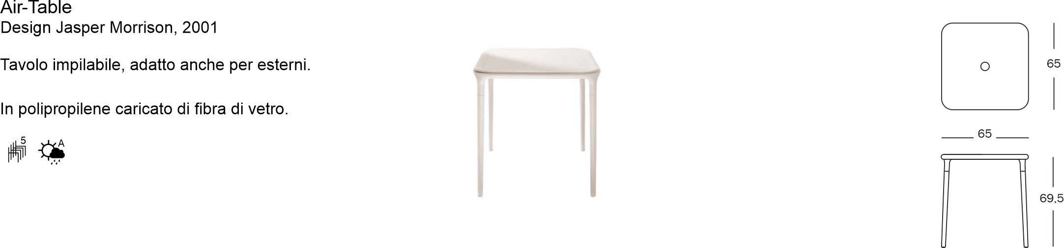 Tavolo impilabile, adatto anche per esterni.