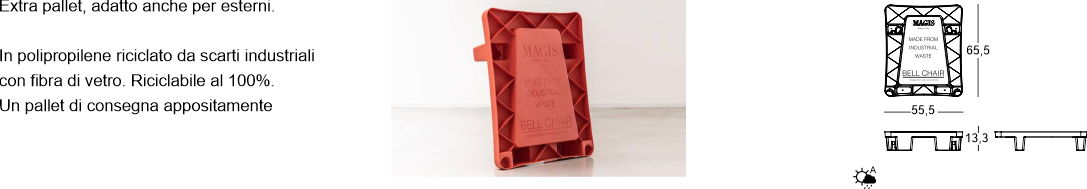 In polipropilene riciclato da scarti industriali con fibra di vetro. Riciclabile al 100%.