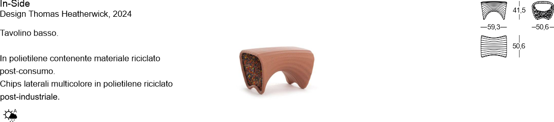 Materiali: polietilene contenente materiale riciclato post-consumo. Chips laterali multicolore in polietilene riciclato post-industriale. Adatto per esterni.