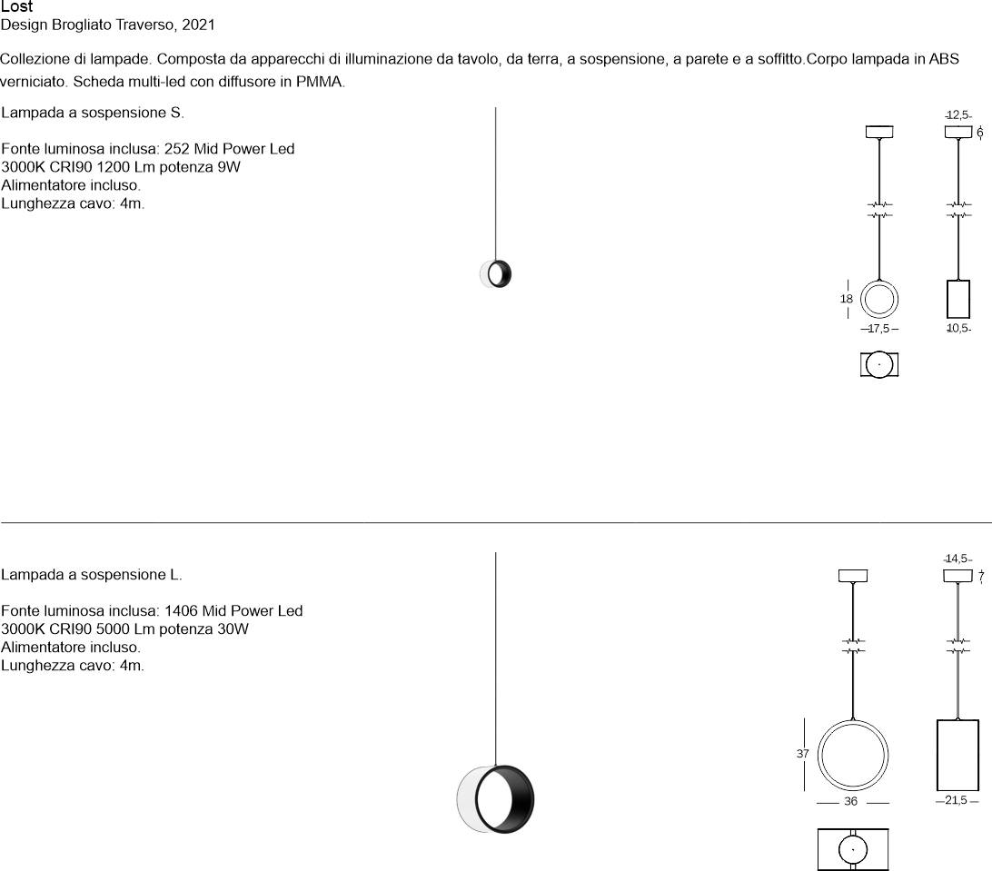 Corpo in ABS verniciato. Scheda multi-led con diffusore in PMMA.