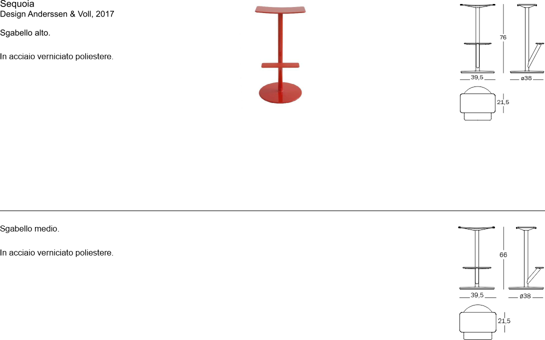 Materiali: acciaio verniciato poliestere. Disponibile cuscino in poliuretano espanso e rivestito in tessuto (Kvadrat “Divina MD”e “Divina 3”).