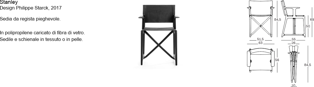 Sedia da regista pieghevole. In polipropilene caricato di fibra di vetro.