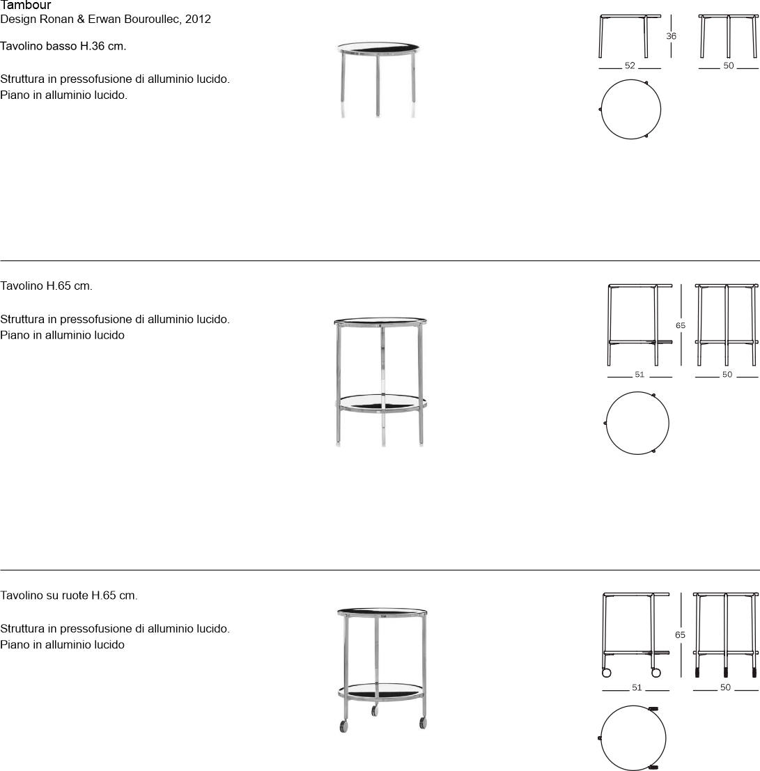 Materiale: struttura in pressofusione di alluminio lucido. Piano in alluminio lucido.
