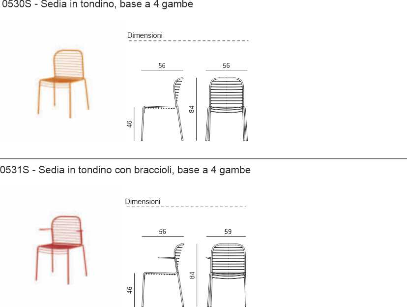 • Sedile e schienale in tondino di acciaio