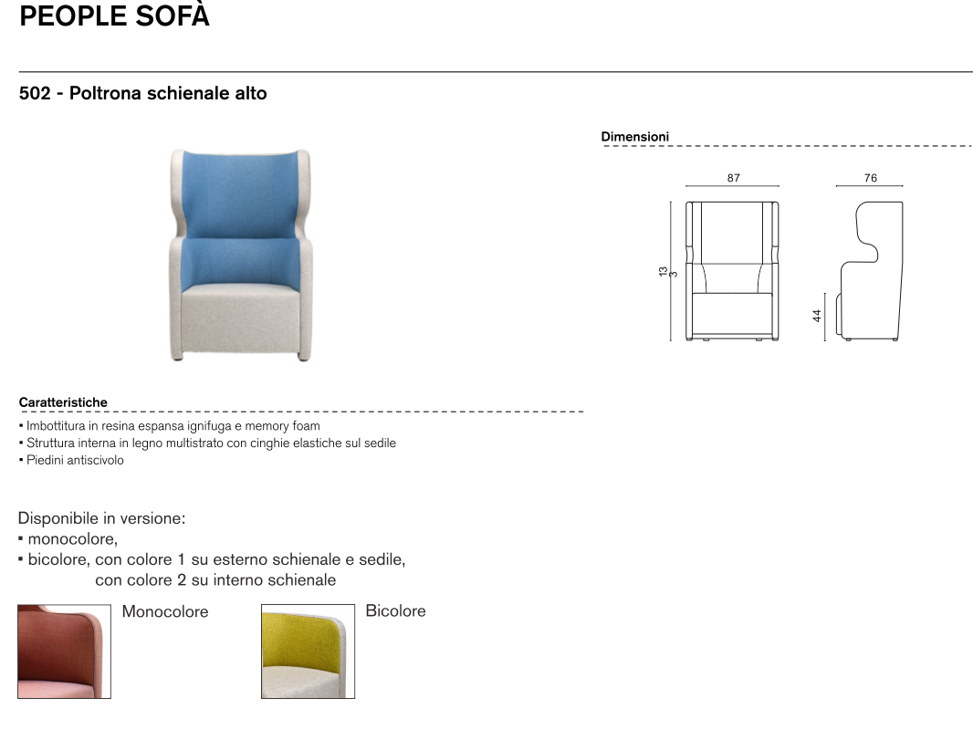 Forme fluide e versatili caratterizzano i divani e le poltrone People, proposti con schienale alto. Nella versione privacy con scrivania creano aree di attesa e postazioni di incontro, garantendo l’isolamento necessario in ambienti open space. Possono essere dotati di presa elettrica e USB, e/o tasca laterale portariviste.