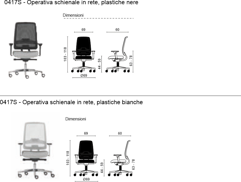 • Schienale in rete RS con supporto lombare regolabile in altezza