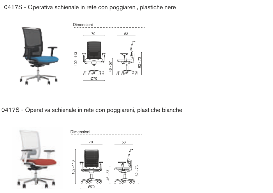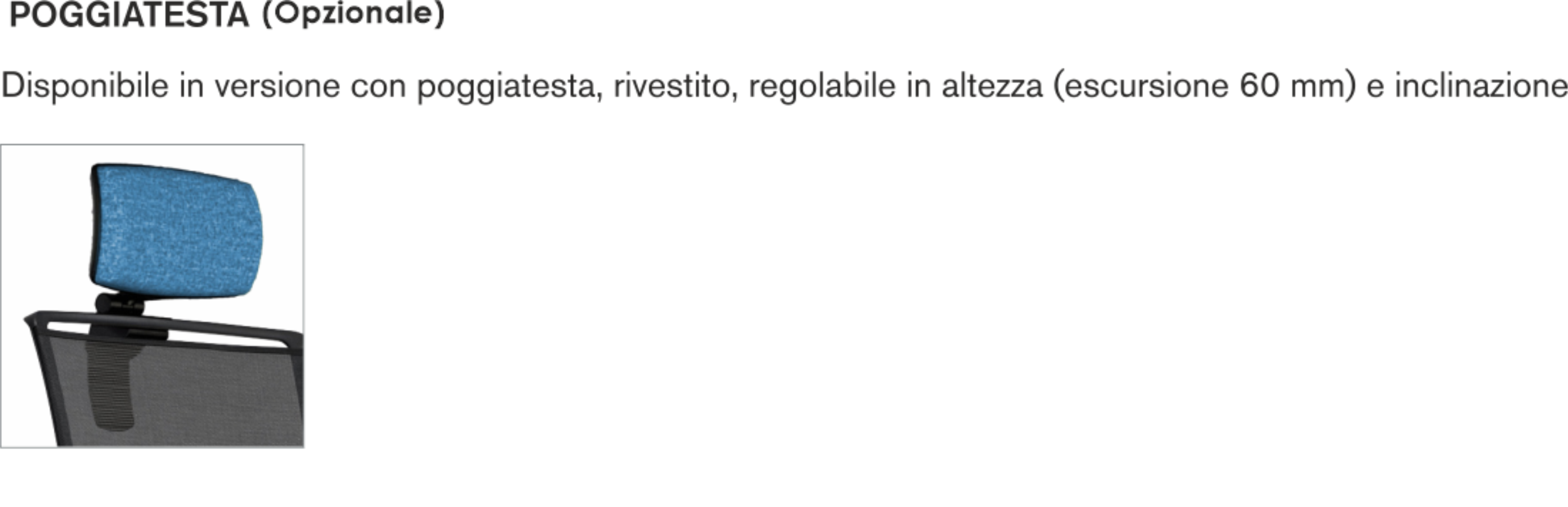 • Sedile in schiumato ignifugo, Schienale in rete RS regolabile in altezza