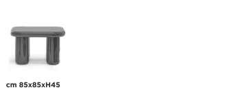 Tavolino da salotto caratterizzato da linee morbide, forme semplici e volumi generosi.