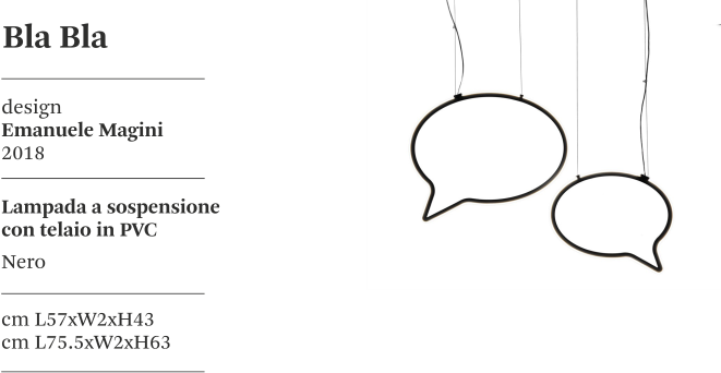 BlaBla è una lampada divertente e coinvolgente, un omaggio alla convivialità, allo stare insieme, al piacere di parlare, attraverso la reinterpretazione di un icona pop.