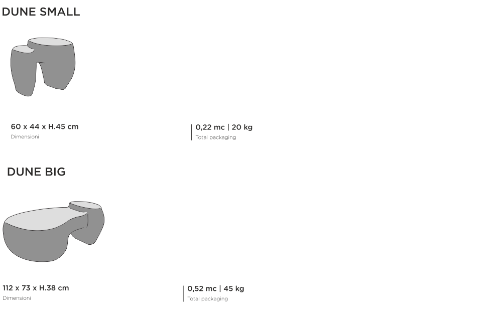 Tavolini in gres disponile nei colori: avorio, antracite o mattone. Le forme organiche, come un paesaggio naturale, sembra siano in costante cambiamento a seconda di come la luce li illumina.