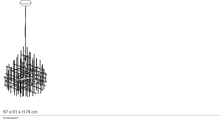 Lampada a sospensione con struttura in metallo disponibile nelle finiture brunito e oro, completa di tubo LED 360°. La struttura è semplice e rigorosa il ritmo è scandito dalle bacchette di ferro fissate a diversi intervalli, il tubo luminoso non ha vincoli e invita a perdersi in un ritmo di ombre e riflessi sempre diverso.