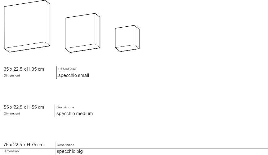 Narciso è uno specchio quadrato composto da semplici superfici riflettenti a veri e propri volumi spaziali. Completamente specchiante, cattura lo spazio circostante, lo moltiplica all'infinito e crea giochi di prospettive inattese dove la realtà si fonde con l'illusione. Pensati per accogliere oggetti, trasformano lo specchio in un elemento d'arredo pratico e versatile.