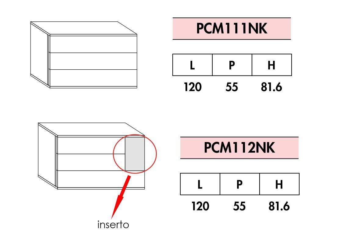 Disponibile anche con 3 cassetti frontali + anta inserto.