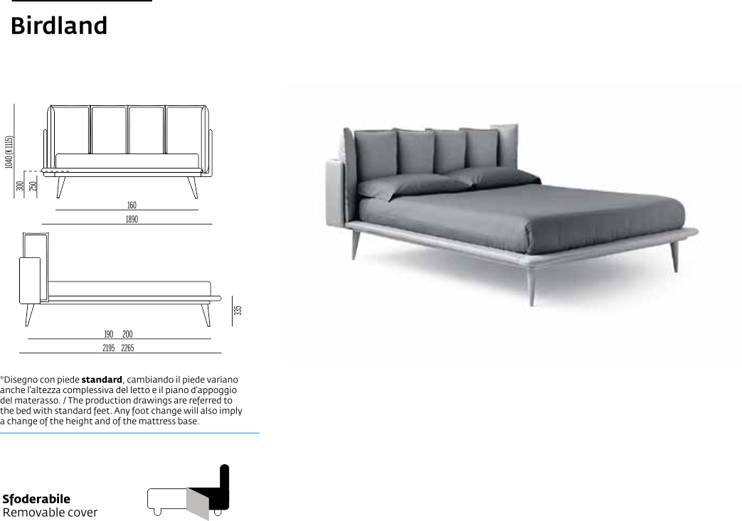 L’originale testata del letto Birdland è composta da sei morbidi cuscini rimovibili. Il letto può essere realizzato in tinta unita nei vari tessuti del campionario, oppure in 7 versioni speciali Inspiration. In queste il giroletto, la struttura della testata e il retro di ogni cuscino sono in tessuto Rimini, mentre il frontale dei cuscini è realizzato in diversi abbinamenti cromatici dei tessuti Riccione, Maratea, Cervia, Brando e Bellaria. Divertiti a spostare i cuscini, a cambiare la loro posizione, a capovolgerli fronte retro, rendendo ogni giorno il tuo Birdland diverso. Rete ortopedica inclusa.