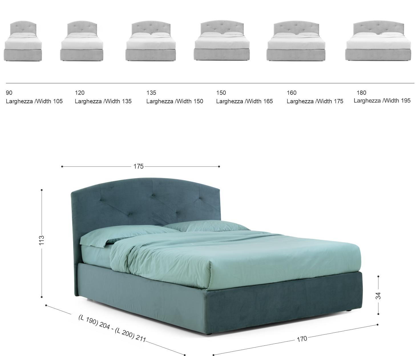 Eleganza classica e comfort contemporaneo si incontra no in questo raffinato letto imbottito, impreziosito da una scenografica testata curva lavorata a capitonné. Le linee morbide della testata avvolgono delicatamente lo spazio, creando un effetto accogliente e avvolgente, ideale per momenti di relax e lettura.