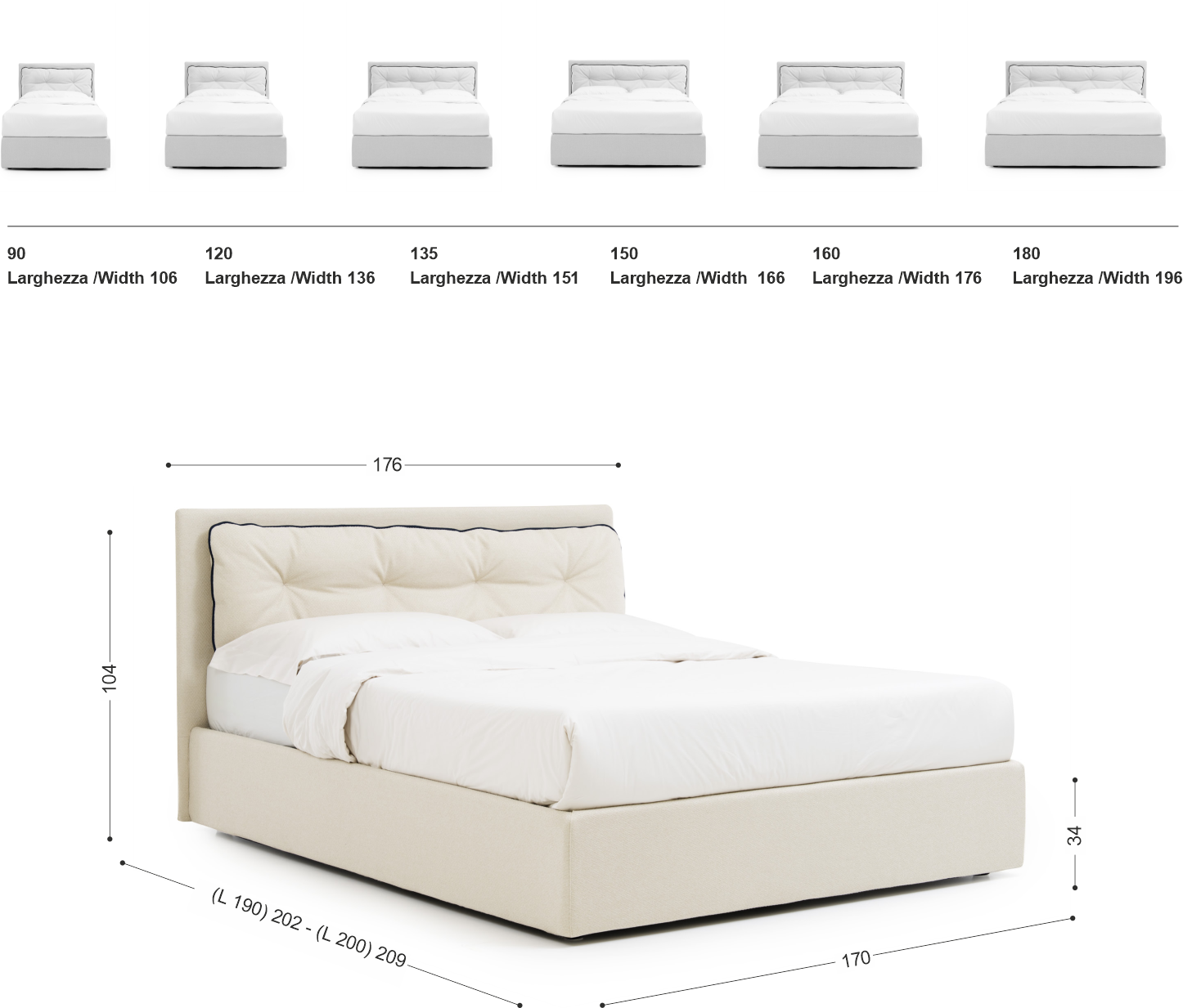 Dal design essenziale e accogliente, si distingue per la sua testata lineare impreziosita da un grande cuscinone imbottito, che ne costituisce l’elemento centrale e distin tivo. La testata, rivestita in tessuto, velluto o ecopelle, si presenta con un’estetica contemporanea e funzionale, perfetta per ambienti moderni o minimalisti. Un equilibrio perfetto tra stile, comfort e praticità.