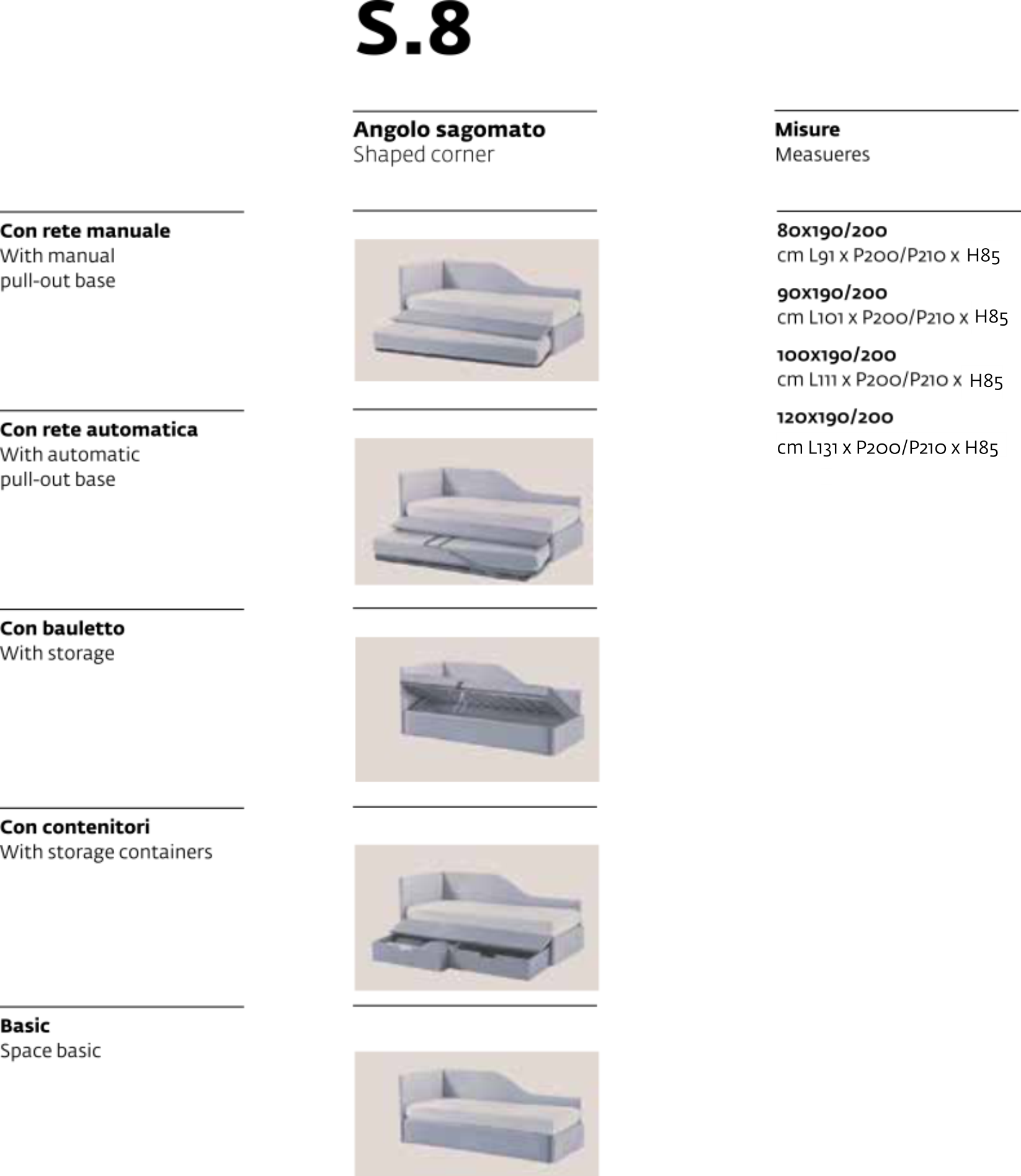 della multifunzionalità abbinata alla modernizzazione della tecnologia. Space è il letto-biletto-divano-con contenitori e non, che vive la sua trasformazione negli spazi domestici spesso ridotti ma capaci di contenere un arredo mutante a seconda