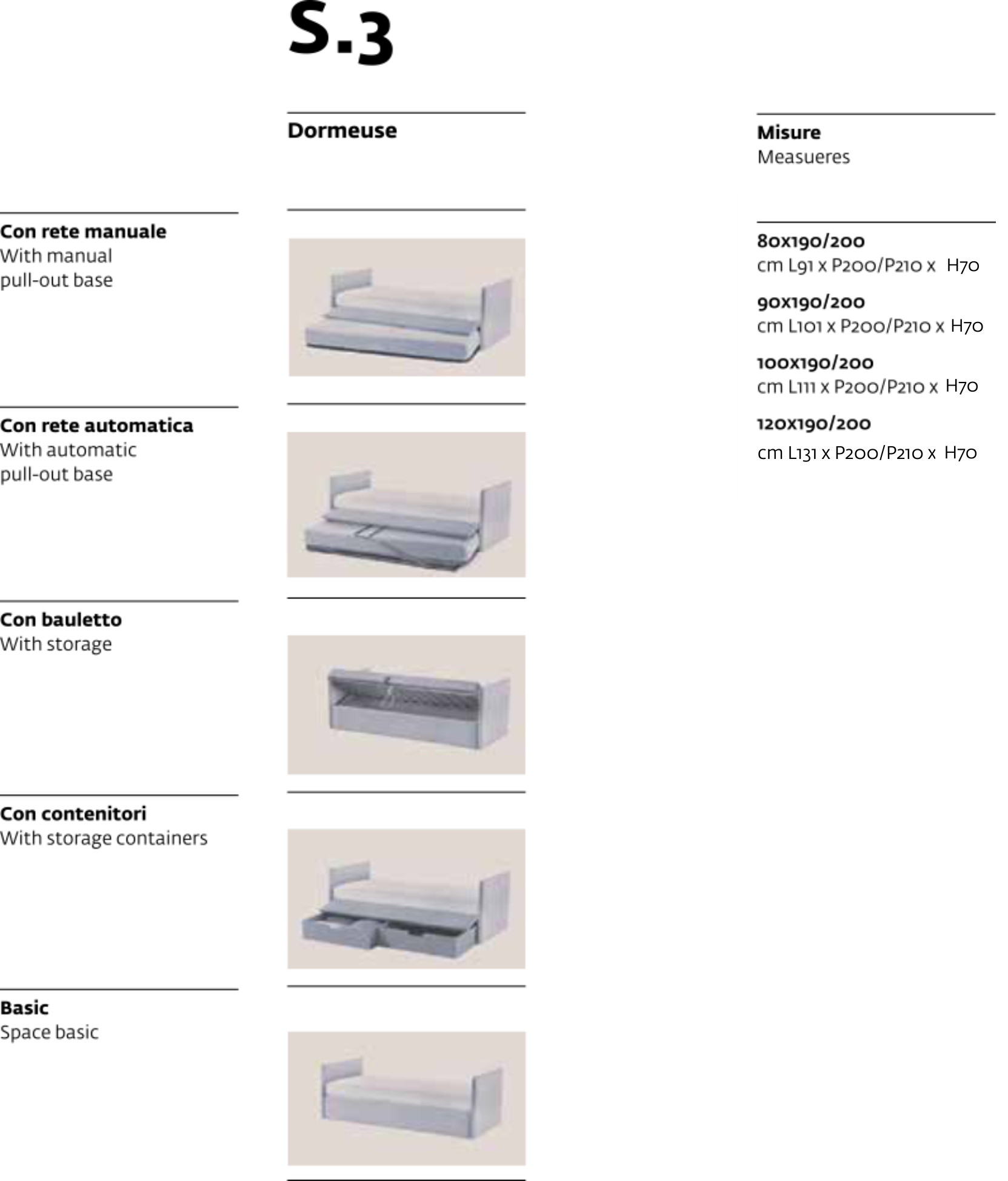 della multifunzionalità abbinata alla modernizzazione della tecnologia. Space è il letto-biletto-divano-con contenitori e non, che vive la sua trasformazione negli spazi domestici spesso ridotti ma capaci di contenere un arredo mutante a seconda