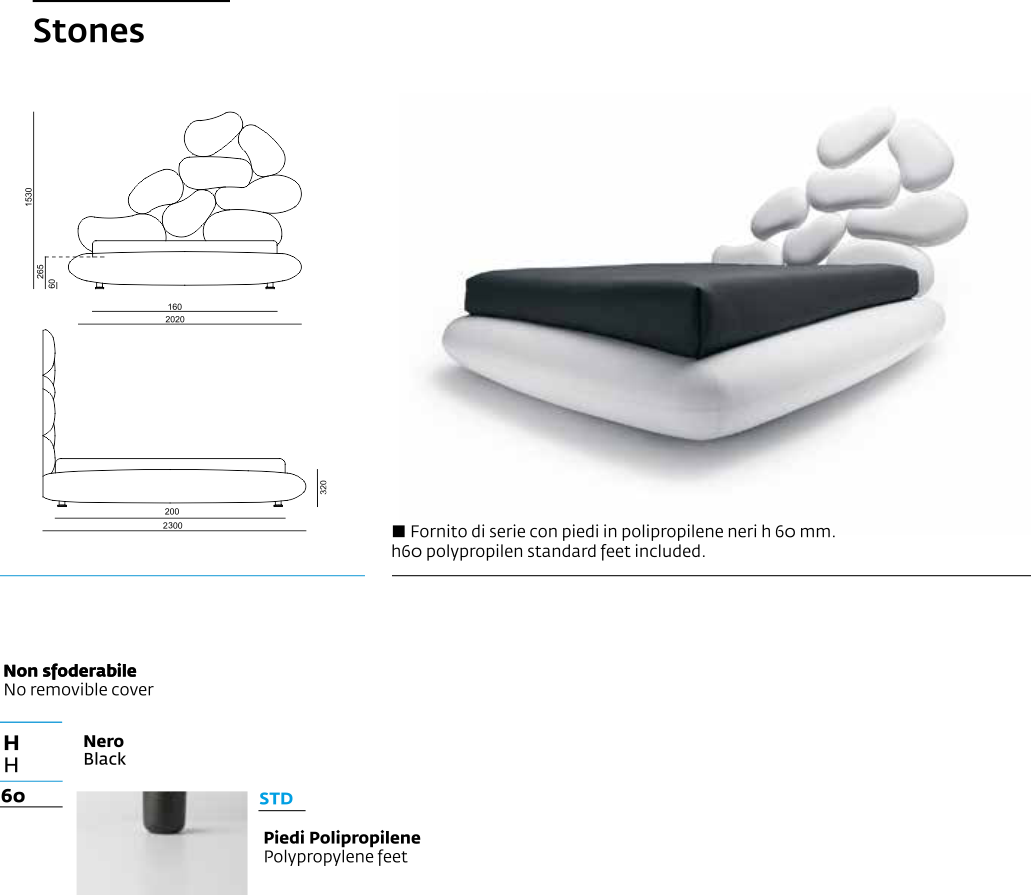 Le linee dell’ormai famoso “letto con le pietre” sono scolpite nell’immaginario collettivo nel mondo del letto tessile.