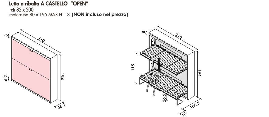 OPEN doppio |letto doppio a ribalta|