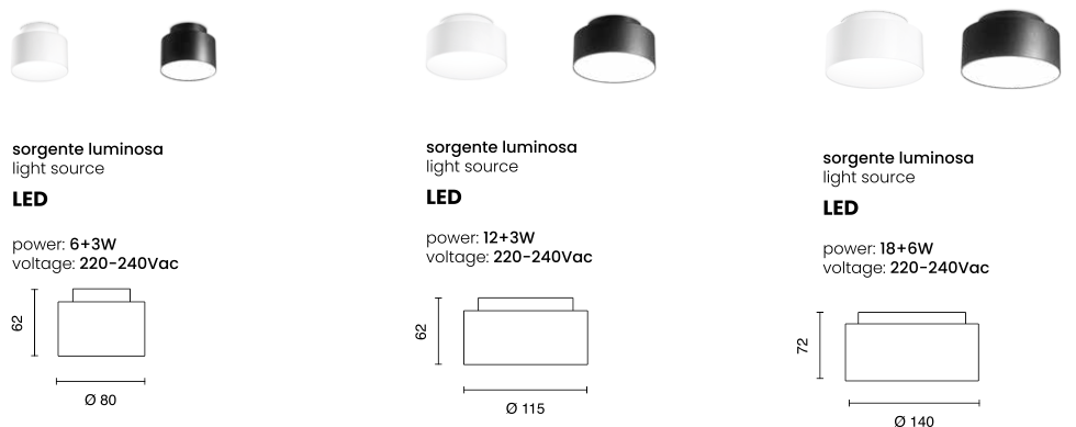 Plafoniera LED in alluminio con diffusore in policarbonato. Doppia emissione luminosa. Driver incluso.
