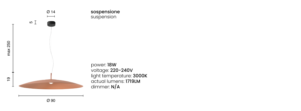 Sospensione a LED in alluminio verniciato, diffusore in policarbonato. Cavetti regolabili in lunghezza.Non dimmerabile.