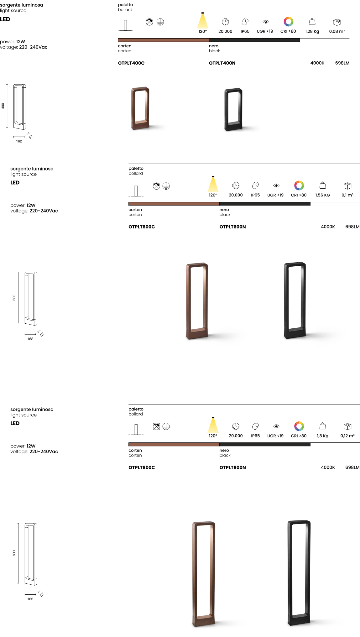 Paletto LED in alluminio con diffusore in vetro. Driver incluso.