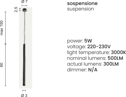 Collezione in metallo con fonte luminosa LED. Cavetti regolabili in lunghezza.