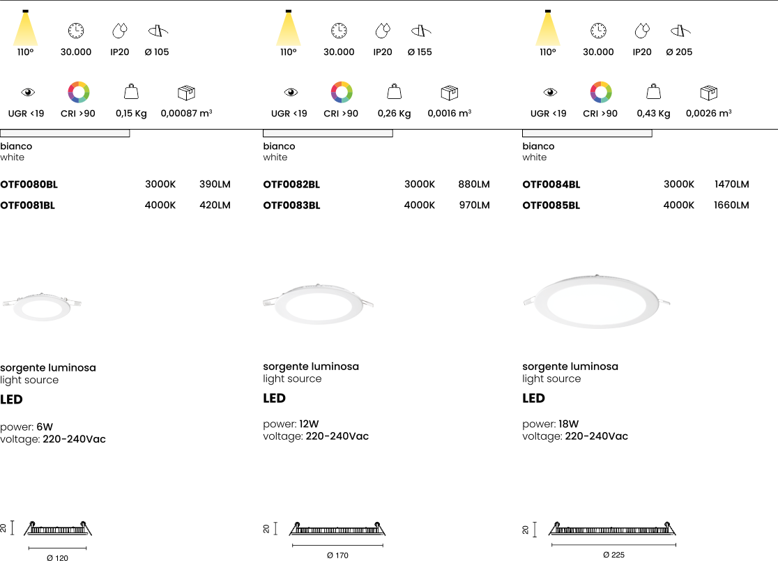 Faretto LED ad incasso. Struttura in alluminio. Finitura in bianco opaco. Diffusore in policarbonato. Driver incluso.
