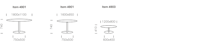 Inox è sobrio e funzionale, definito da una geometria che lo rende adatto a contesti diversi. Tavolo con base centrale ellittica in acciaio, colonna e copribase in acciaio inox. Ripiano ellittico disponibile in diverse dimensioni e finiture.