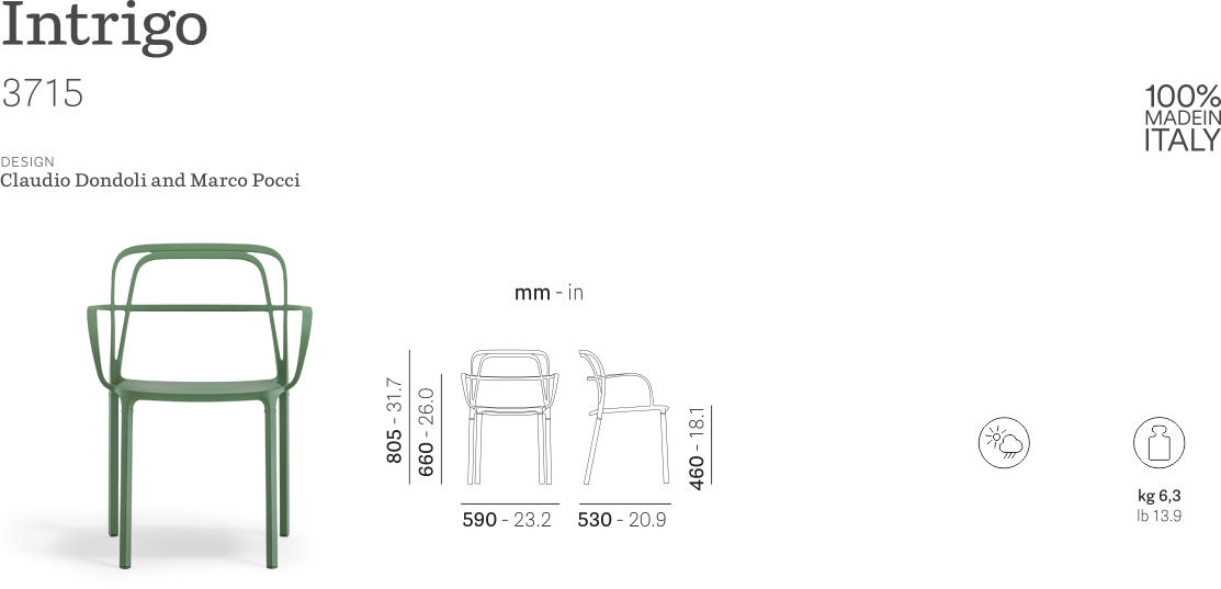 Un insieme di linee che si intersecano armonicamente dando origine ad una silhouette avvolgente e minimale. Intrigo è una seduta in cui la pressofusione di alluminio crea sezioni differenti per schienale, braccioli e gambe.
