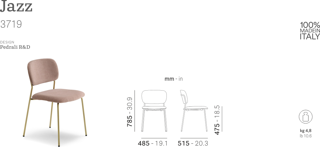 Una collezione di sedute che si ispira al celebre Bar Jamaica di via Brera a Milano, ritrovo di intellettuali e artisti del secolo scorso. Nella poltroncina imbottita Jamaica il calore del multistrato di frassino delle gambe, a spessore variabile, e della scocca, caratterizzata da un supporto lombare centrale, è sapientemente accostato ad un tubo d’acciaio Ø16 mm che funge da schienale e costituisce un elemento cromatico gentile, non invadente. La scocca è completamente imbottita e rivestita in tessuto o in eco-pelle, massimizzando il comfort della seduta e garantendo svariate personalizzazioni.