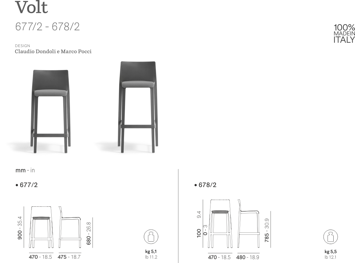 Volt è elegante e accogliente. Si caratterizza per il tratto sottile, la forma ergonomica e le gradevoli proporzioni. Sgabello in polipropilene caricato con fibre di vetro e stampato a iniezione con gas air moulding, sedile imbottito rivestito in tessuto o eco pelle.