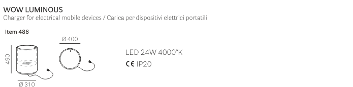 Tavolino contenitore luminoso Wow realizzato in polietilene con ripiano in metacrilato e base in acciaio. Il vano portaoggetti dispone di doppia presa elettrica per ricaricare i dispositivi elettrici portatili. Fornito di lampada 25W a basso consumo energetico. Per uso indoor.