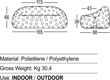 Divano derivato dalla famiglia "Gumball", di grande impatto scenico e adatti ad ambienti in cui necessitano soluzioni di forte personalità. La superficie forata "svuota" gli oggetti e conferisce una leggerezza inedita per questa tipologia di arredi.