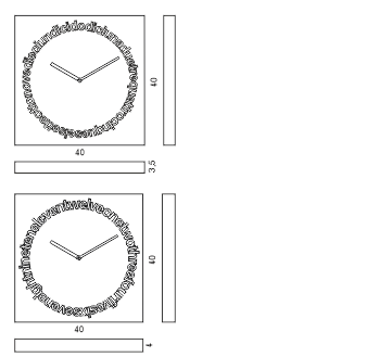 Dodici, disegnato da Alberto Sala, è un orologio da parete dove i numeri, che normalmente popolano il quadrante di un orologio, si trasformano in lettere che rincorrendosi, senza soluzione di continuità, danno vita ad un orologio diverso e fortemente espressivo. Le scritte sono leggermente in rilievo. Verniciato con vernice opaca atossica. Si può scegliere tra le versioni con scritte in italiano o in inglese. Movimento al quarzo a batteria di produzione tedesca.
