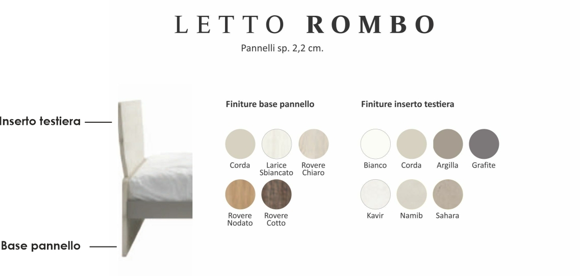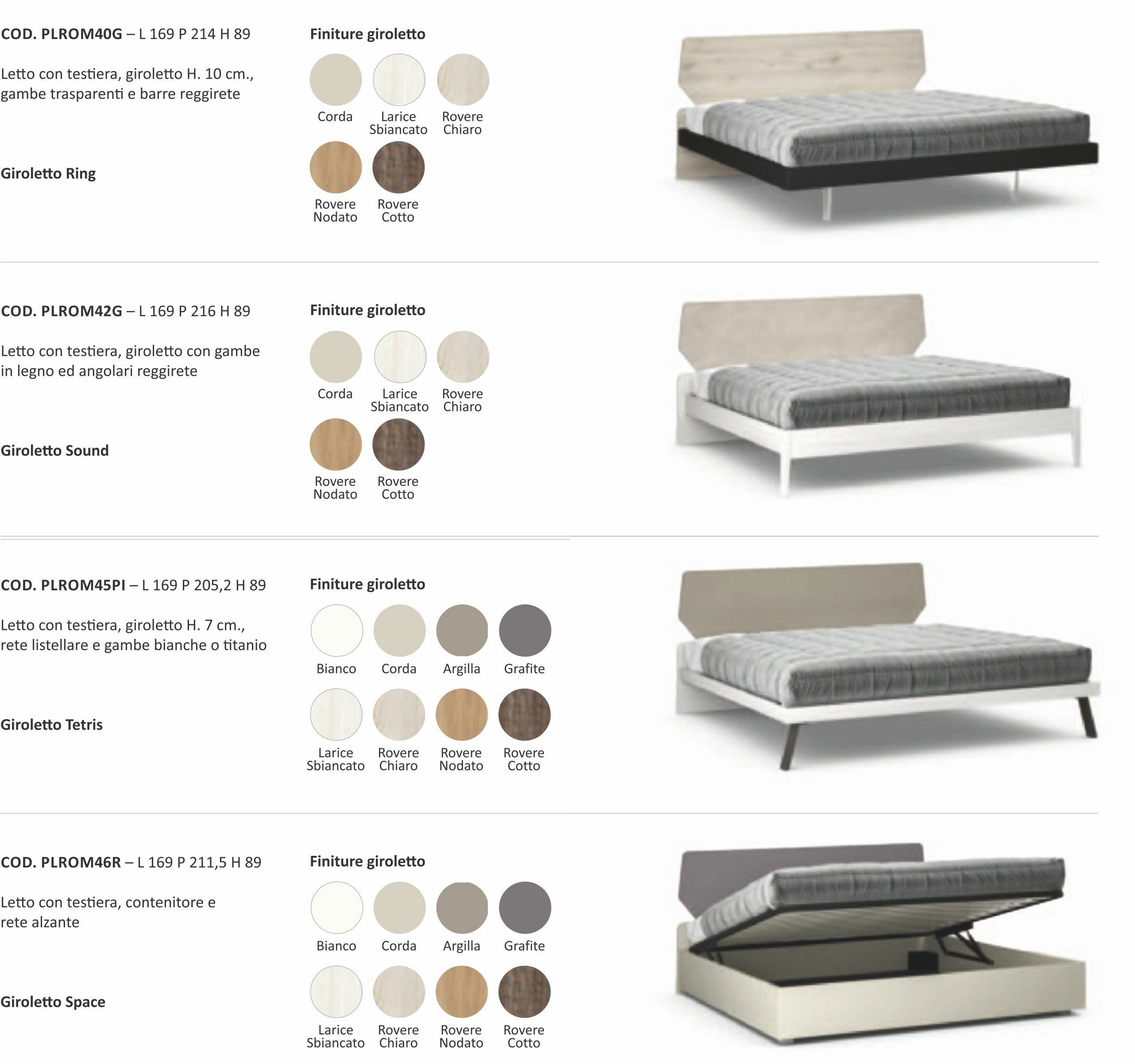 Letto con testiera e giroletto in legno. Disponibile con piedi trasparenti, legno o metallo. Pannelli spessore 2,2cm