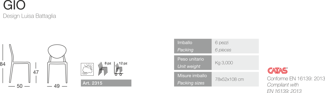 Struttura in tecnopolimero rinforzato fibra di vetro. Stampata ad iniezione con tecnica air moulding. Disponibile in diversi colori. Comode e impilabili, sono particolarmente indicate per l’outdoor. Per uso interno/esterno.