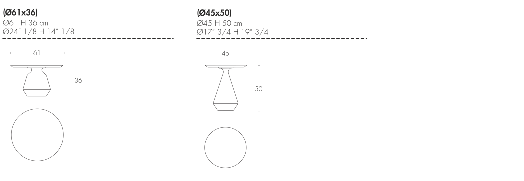 Tavolini preziosi ed elegantissimi, che arricchiscono ogni ambiente di cui divengano parte. Due diverse altezze, con basi in ceramica e top in MDF rivestito in legno noce canaletto, o rovere. Diverse colorazioni, accoppiate a creare la combinazione perfetta: bianco e viola opachi o lucidi; bianco e verde salvia; bianco e nero lucidi, uniti all’oro.