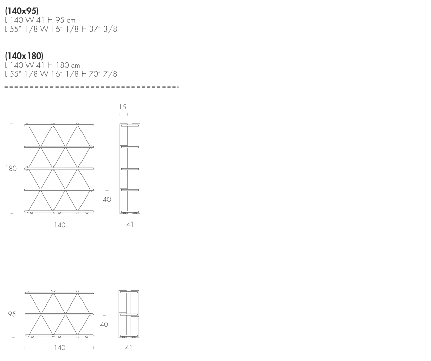 Una struttura leggera ed essenziale, che fonda la sua forza sugli spazi aperti, su triangoli di luce che invadono la presenza di metallo e legno. Come un castello di carte, Castle si riempie grazie ai colori, ai giochi di luce che ciascuna delle sue finiture è in grado di creare, e si modella a piacere, che sia posizionata in verticale o in orizzontale. Un magnifico gioco di design.
