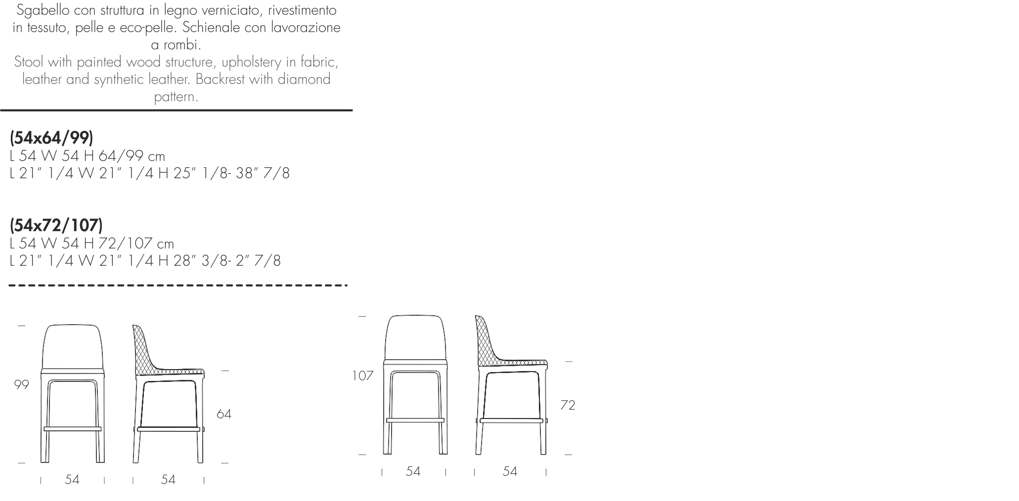 A completamento della collezione Mivida Élite si aggiunge lo sgabello, disponibile in due carinati di misura con elegante trapuntatura a rombi sullo schienale.