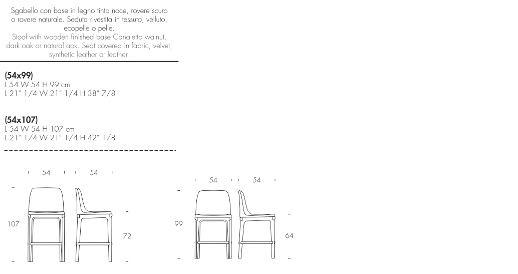 Mivida diventa uno splendido ed elegante sgabello, con base in legno tinto noce, rovere scuro, o rovere naturale, e una seduta rivestita in pelle ed eco-pelle. L’eleganza di Mivida aumenta ulteriormente, grazie alla froma leggera e slanciata della struttura.