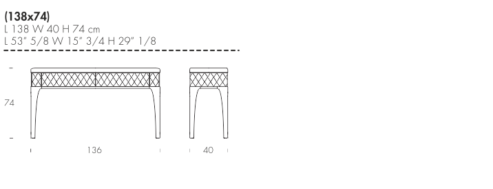 Consolle a 2 cassetti in pelle, eco-pelle o velluto, con trapuntatura a rombi