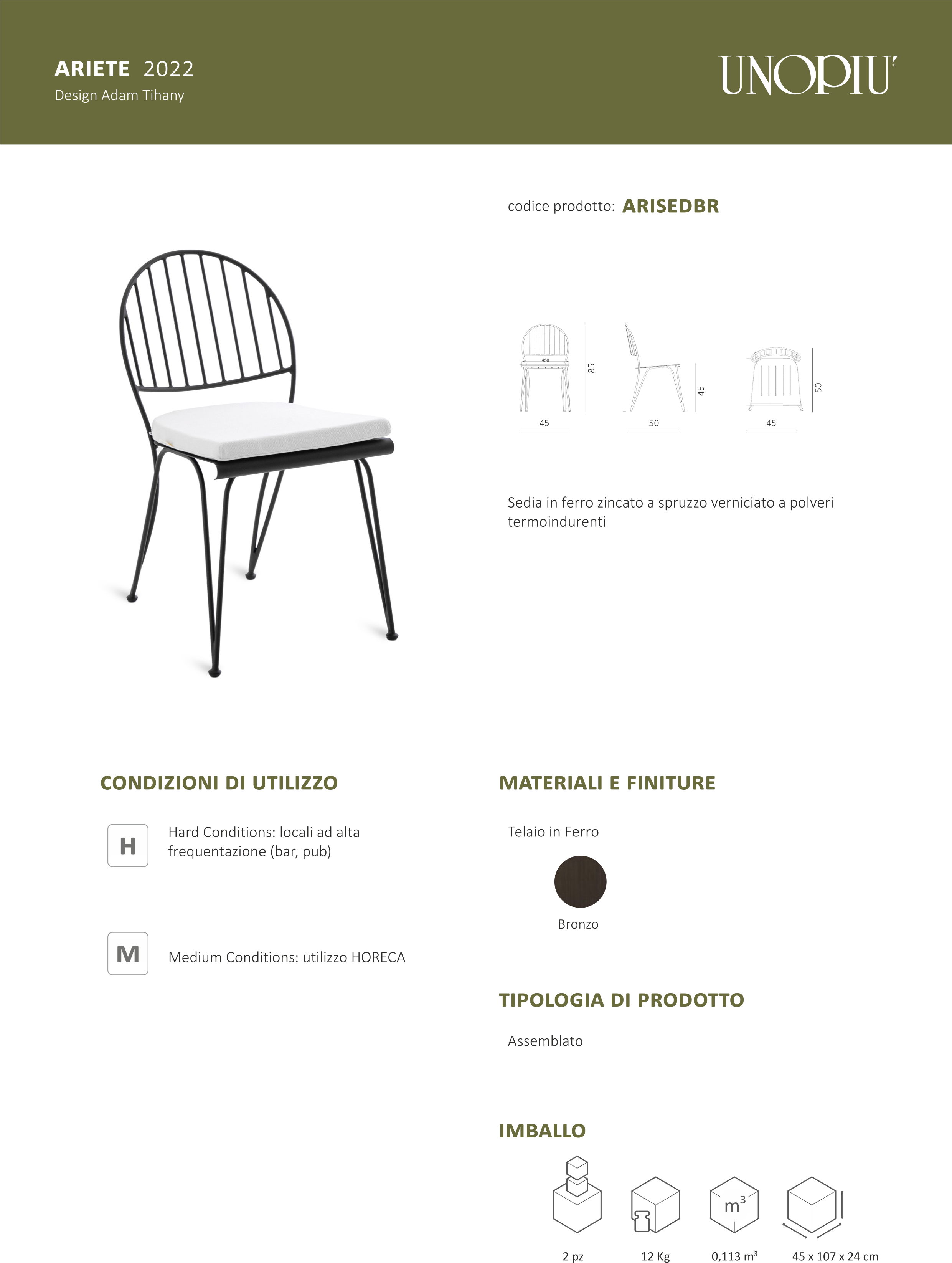 Sedia Ariete (L 45 - P 50 - H 85 - altezza seduta con cuscino 45 cm)