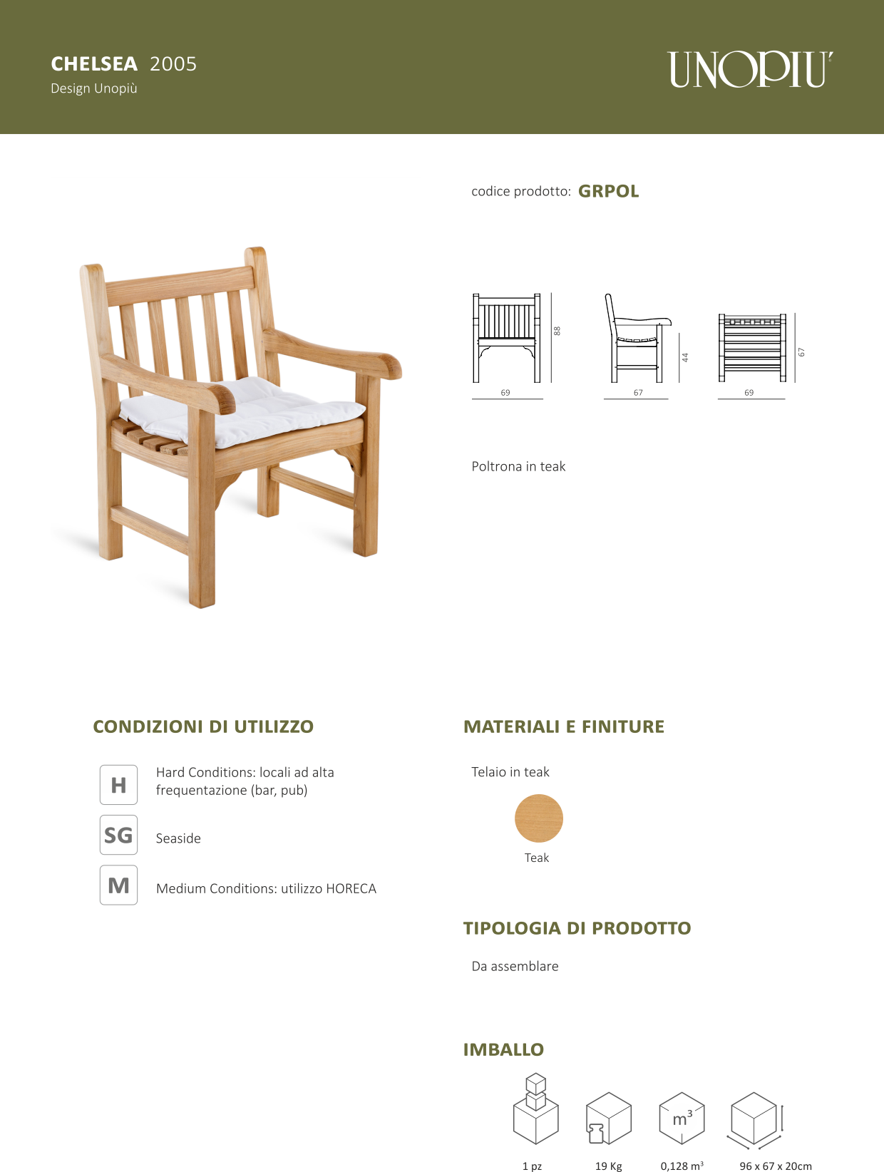 Le sue dimensioni ridotte, pari a cm L 69 X P 67, con un’altezza complessiva, schienale incluso, di cm 88, ed un’altezza di seduta pari a cm 44, rendono la poltrona Chelsea un raffinito oggetto di arredamento di quelli che si immagina di trovare nelle tenute di campagna inglesi.