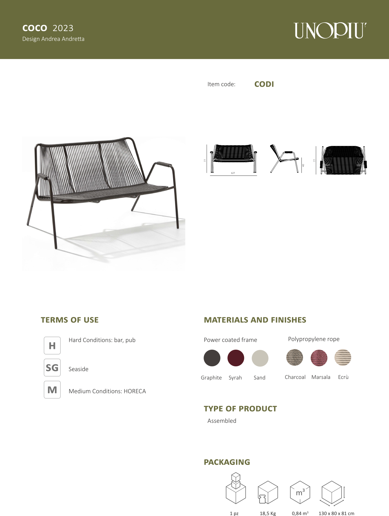 Come molti divani da giardino Unopiù anche il divano Coco è un elemento indispensabile per realizzare progetti di arredo contract. Scegliendo il divano e la poltrona da bar Coco garantiamo un’esperienza di seduta confortevole e un’ambiente accogliente per i tuoi momenti di relax.