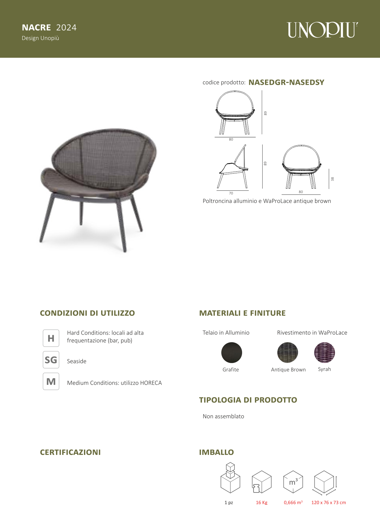 La poltroncina da giardino in waprolace nel colore Tropical Brown e con struttura in ferro alluminio colore grafite è un connubio di stile e resistenza, perfetto per arricchire il tuo spazio all'aperto con un tocco di eleganza tropicale. Le sue dimensioni generose, misurando 80 centimetri in larghezza, 70 centimetri in profondità e 89 centimetri in altezza, la rendono ideale per rilassarsi comodamente. Con un'altezza della seduta da terra di 38 centimetri, offre un supporto ergonomico che favorisce il relax. Realizzata con materiali di alta qualità, questa poltroncina è progettata per resistere agli agenti atmosferici e conservare la sua bellezza nel tempo, garantendo durabilità e comfort ineguagliabili per i tuoi momenti all'aria aperta.