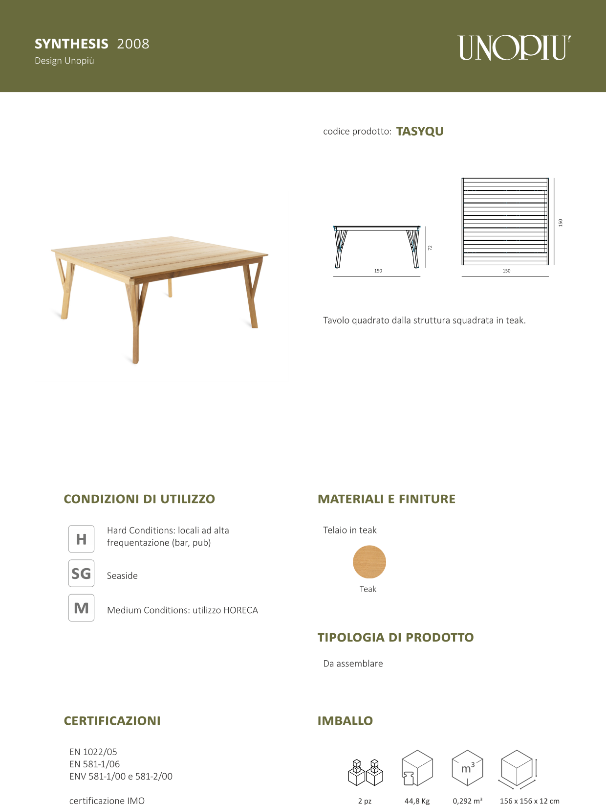 Tavolo Synthesis quadrato di teak 150 x 150 H 72 cm
